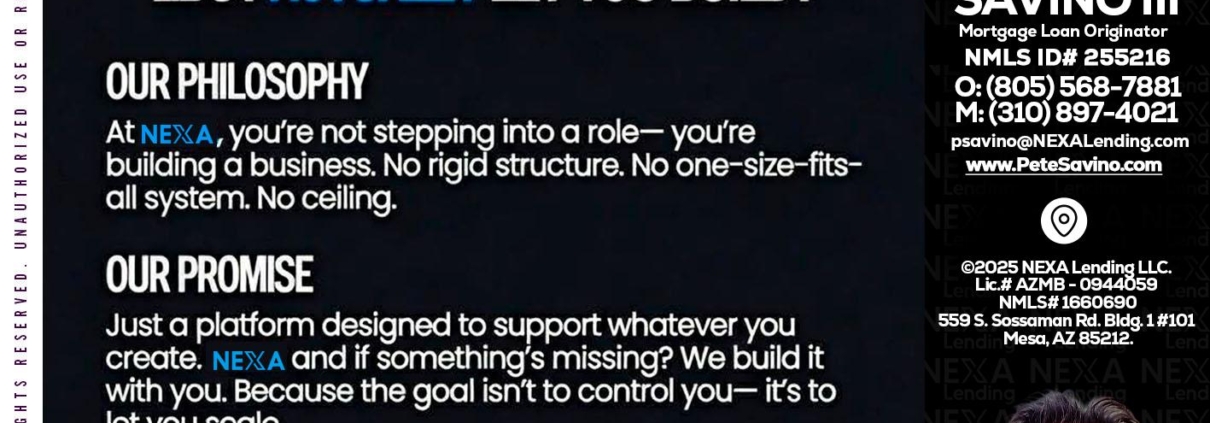 Hi, my name is Pete Savino III. I’m a Loan Officer with NEXA Lending LLC., offering personalized mortgage solutions, fast customized quotes, great rates and service with integrity.